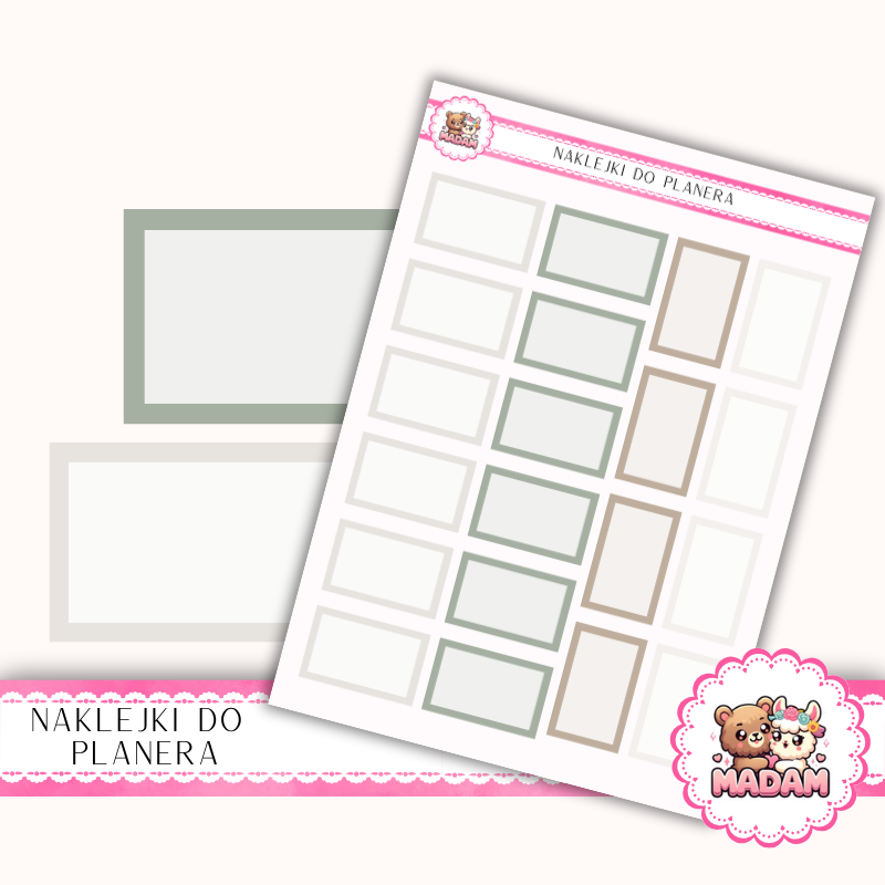 Naklejki do planera pola prostokątne neutralne Sage Calm 13x18 , MaDam Creative