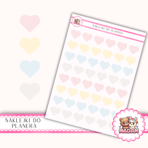 Naklejki do planera serduszka pastelowe 13x18 , Bullet Journal MaDam Creative