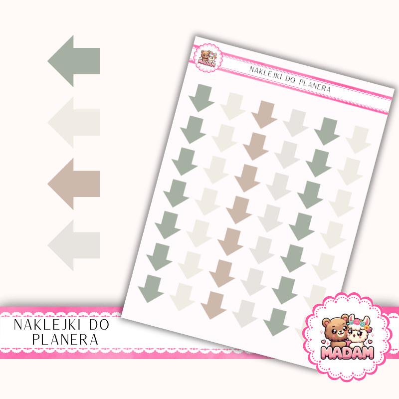 Naklejki do planera strzałki szałwiowe neutralne 13x18 , Bullet Journal MaDam Creative