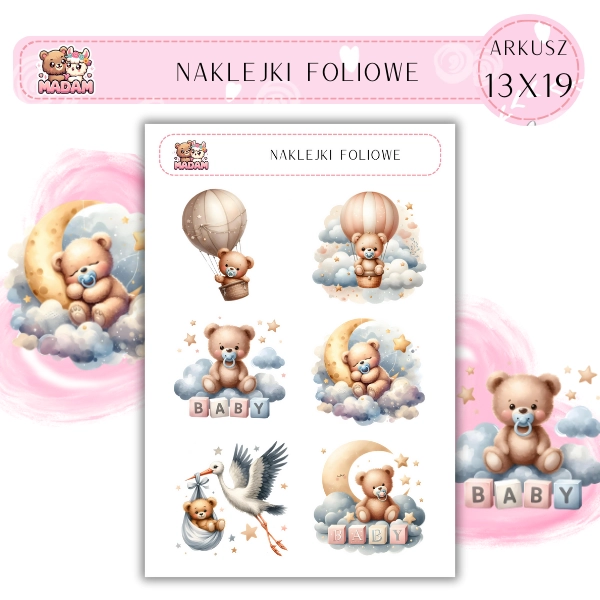 Naklejki foliowe Baby Shower 6 sztuk na arkuszu, MaDam