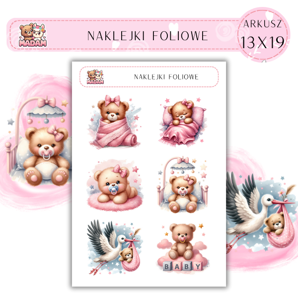 Naklejki foliowe Baby Shower 6 sztuk na arkuszu, MaDam
