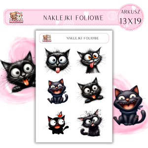Naklejki foliowe Czarne Koty 6 sztuk na arkuszu, MaDam