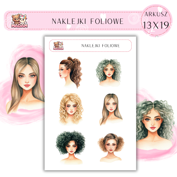 Naklejki foliowe Girls Fryzury 6 sztuk na arkuszu, MaDam