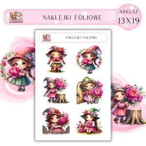 Naklejki foliowe Gnomy Dziewczynka 6 sztuk na arkuszu, MaDam