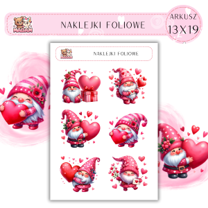 Naklejki foliowe Gnomy Love 6 sztuk na arkuszu, MaDam