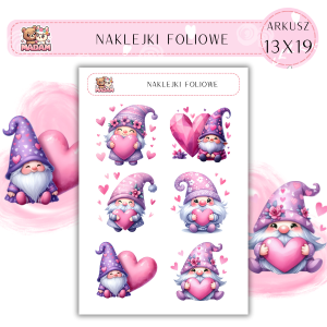 Naklejki foliowe Gnomy Love 6 sztuk na arkuszu, MaDam