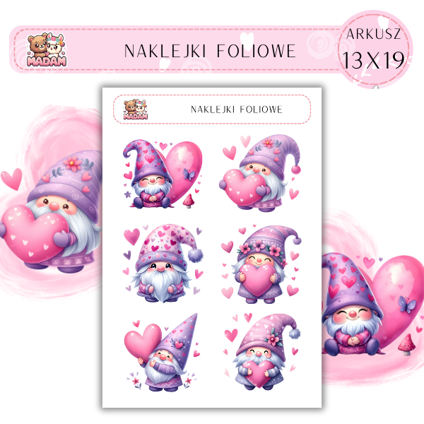 Naklejki foliowe Gnomy Love 6 sztuk na arkuszu, MaDam