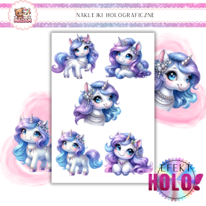 Naklejki foliowe Holograficzne Jednorożce z wodoodpornym klejem 5 sztuk 6 cm, MaDam
