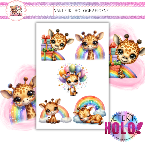 Naklejki foliowe Holograficzne Żyrafa z wodoodpornym klejem 5 sztuk 6 cm, MaDam