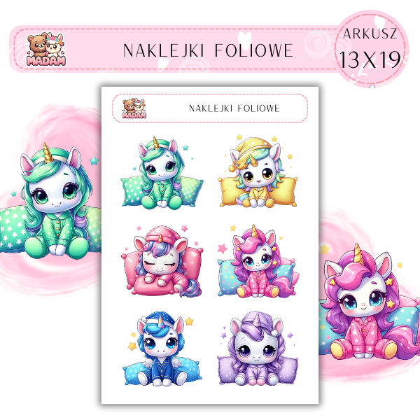 Naklejki foliowe Jednorożce 6 sztuk na arkuszu, MaDam