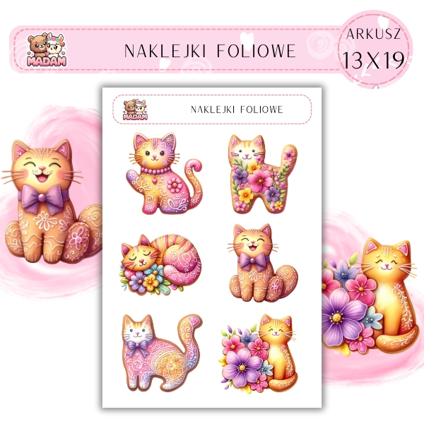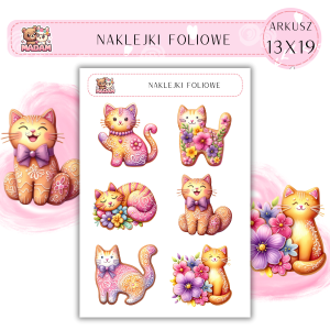 Naklejki foliowe Koty 6 sztuk na arkuszu, MaDam