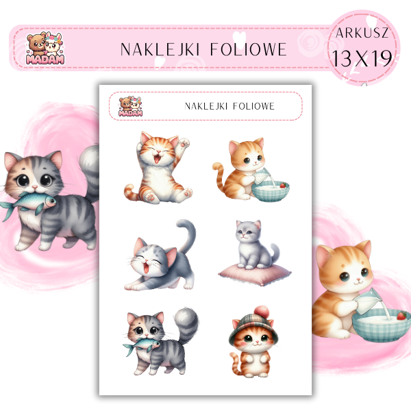 Naklejki foliowe Koty 6 sztuk na arkuszu, MaDam