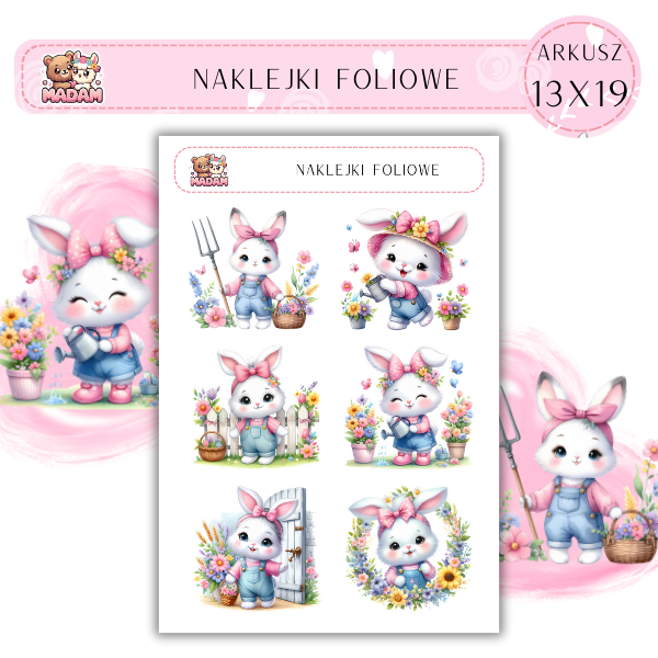Naklejki foliowe Króliki 6 sztuk na arkuszu, MaDam