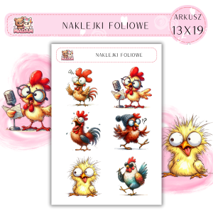 Naklejki foliowe Kura Kogut 6 sztuk na arkuszu, MaDam