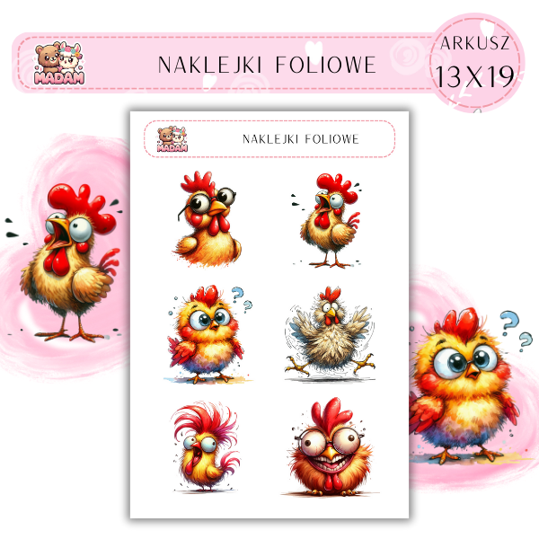 Naklejki foliowe Kura Kogut 6 sztuk na arkuszu, MaDam