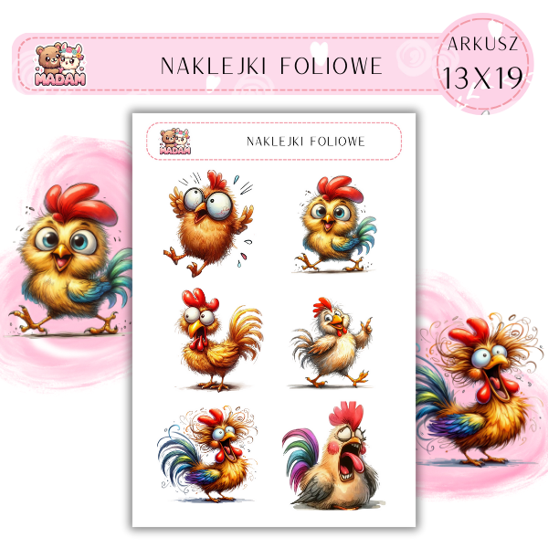 Naklejki foliowe Kura Kogut 6 sztuk na arkuszu, MaDam