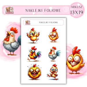Naklejki foliowe Kura Kogut 6 sztuk na arkuszu, MaDam
