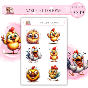 Naklejki foliowe Kurczak 6 sztuk na arkuszu, MaDam