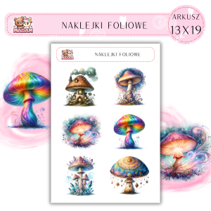 Naklejki foliowe Magiczne Grzyby 6 sztuk na arkuszu, MaDam
