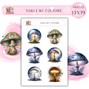 Naklejki foliowe Magiczne Grzyby 6 sztuk na arkuszu, MaDam