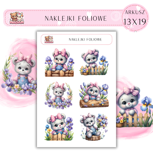 Naklejki foliowe Misie 6 sztuk na arkuszu, MaDam