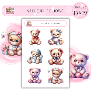 Naklejki foliowe Misie 6 sztuk na arkuszu, MaDam