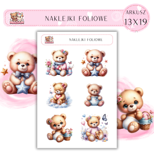 Naklejki foliowe Misie 6 sztuk na arkuszu, MaDam