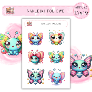 Naklejki foliowe Motyle 6 sztuk na arkuszu, MaDam
