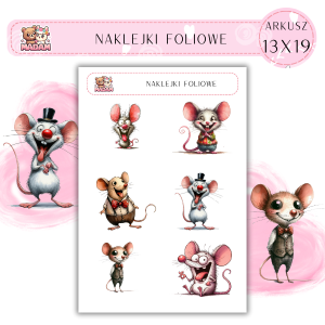 Naklejki foliowe Myszy 6 sztuk na arkuszu, MaDam