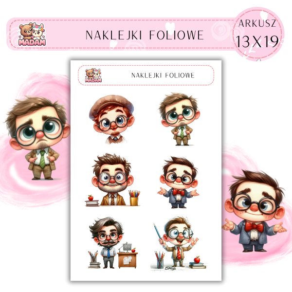 Naklejki foliowe Nauczyciel 6 sztuk na arkuszu, MaDam