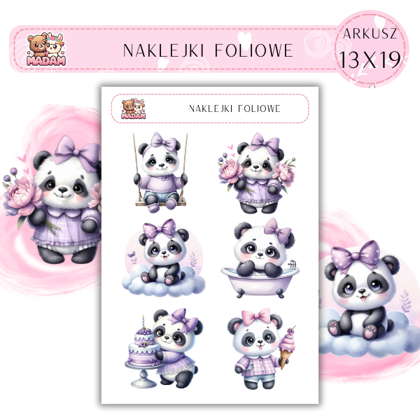 Naklejki foliowe Panda 6 sztuk na arkuszu, MaDam
