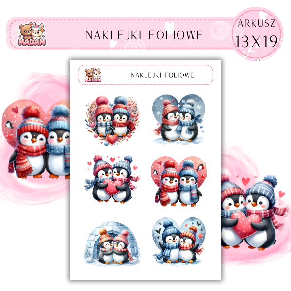 Naklejki foliowe Pingwiny Love 6 sztuk na arkuszu, MaDam