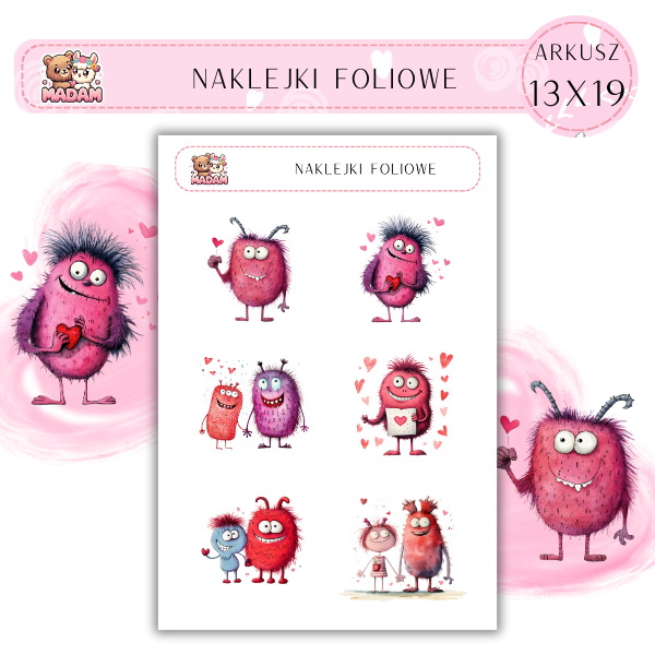 Naklejki foliowe Potworki 6 sztuk na arkuszu, MaDam