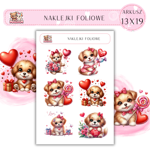 Naklejki foliowe Psy Love 6 sztuk na arkuszu, MaDam