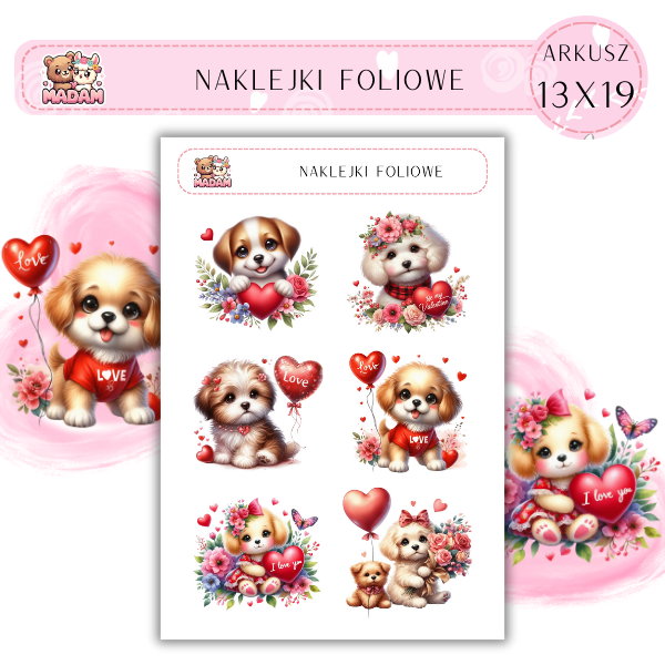 Naklejki foliowe Psy Love 6 sztuk na arkuszu, MaDam