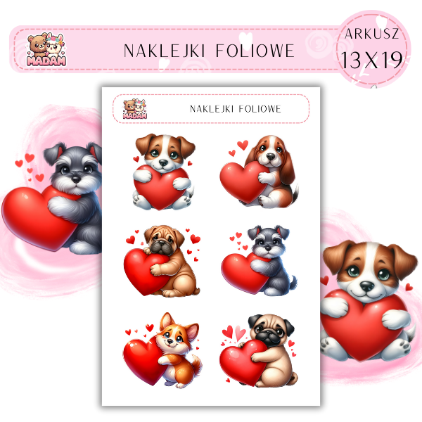 Naklejki foliowe Psy Serce 6 sztuk na arkuszu, MaDam