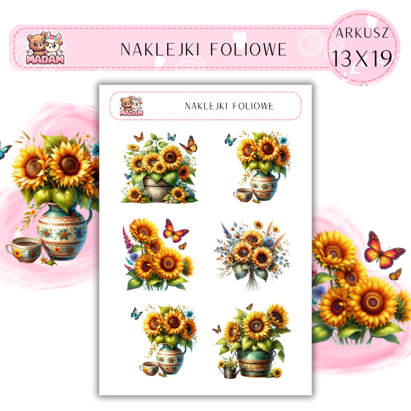 Naklejki foliowe Rośliny Słoneczniki 6 sztuk na arkuszu, MaDam