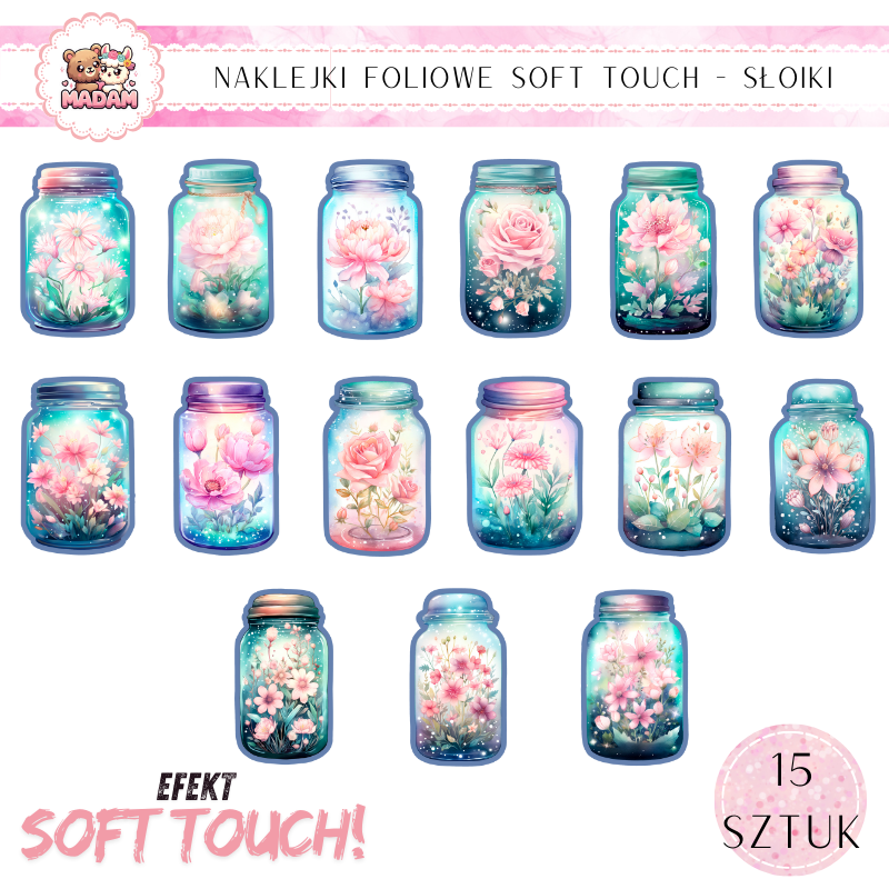 Naklejki foliowe Słoiki Soft Touch Magiczne Kwiaty, MaDam