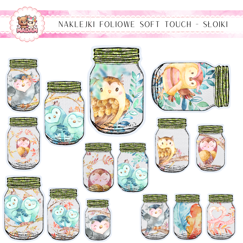 Naklejki foliowe Słoiki Soft Touch Sowy, MaDam