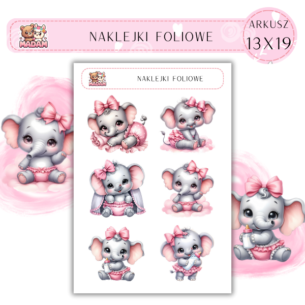 Naklejki foliowe Słoń Baby 6 sztuk na arkuszu, MaDam
