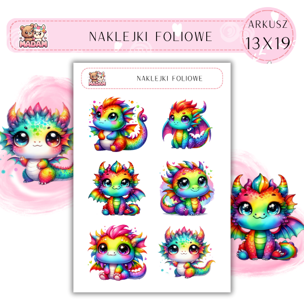 Naklejki foliowe Smoki 6 sztuk na arkuszu, MaDam