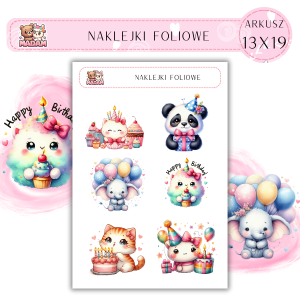 Naklejki foliowe Urodziny 6 sztuk na arkuszu, MaDam