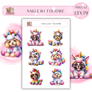 Naklejki foliowe Zwierzęta Jednorożce 6 sztuk na arkuszu, MaDam