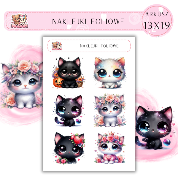 Naklejki foliowe Zwierzęta Koty 6 sztuk na arkuszu, MaDam