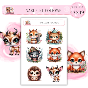Naklejki foliowe Zwierzęta Leśne 6 sztuk na arkuszu, MaDam