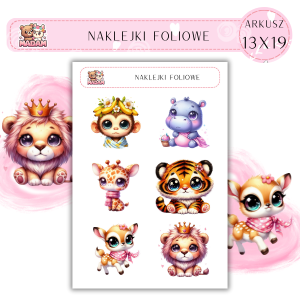 Naklejki foliowe Zwierzęta Safari 6 sztuk na arkuszu, MaDam
