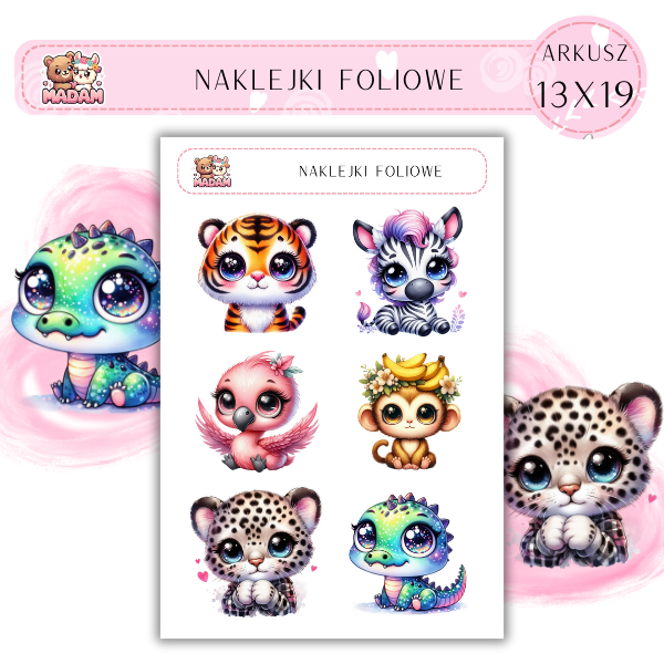Naklejki foliowe Zwierzęta Safari 6 sztuk na arkuszu, MaDam
