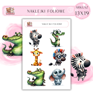 Naklejki foliowe Zwierzęta Safari 6 sztuk na arkuszu, MaDam