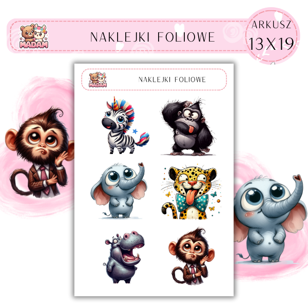 Naklejki foliowe Zwierzęta Safari 6 sztuk na arkuszu, MaDam