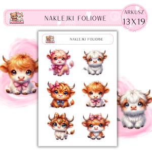 Naklejki foliowe Zwierzęta Włochate Krowy 6 sztuk na arkuszu, MaDam